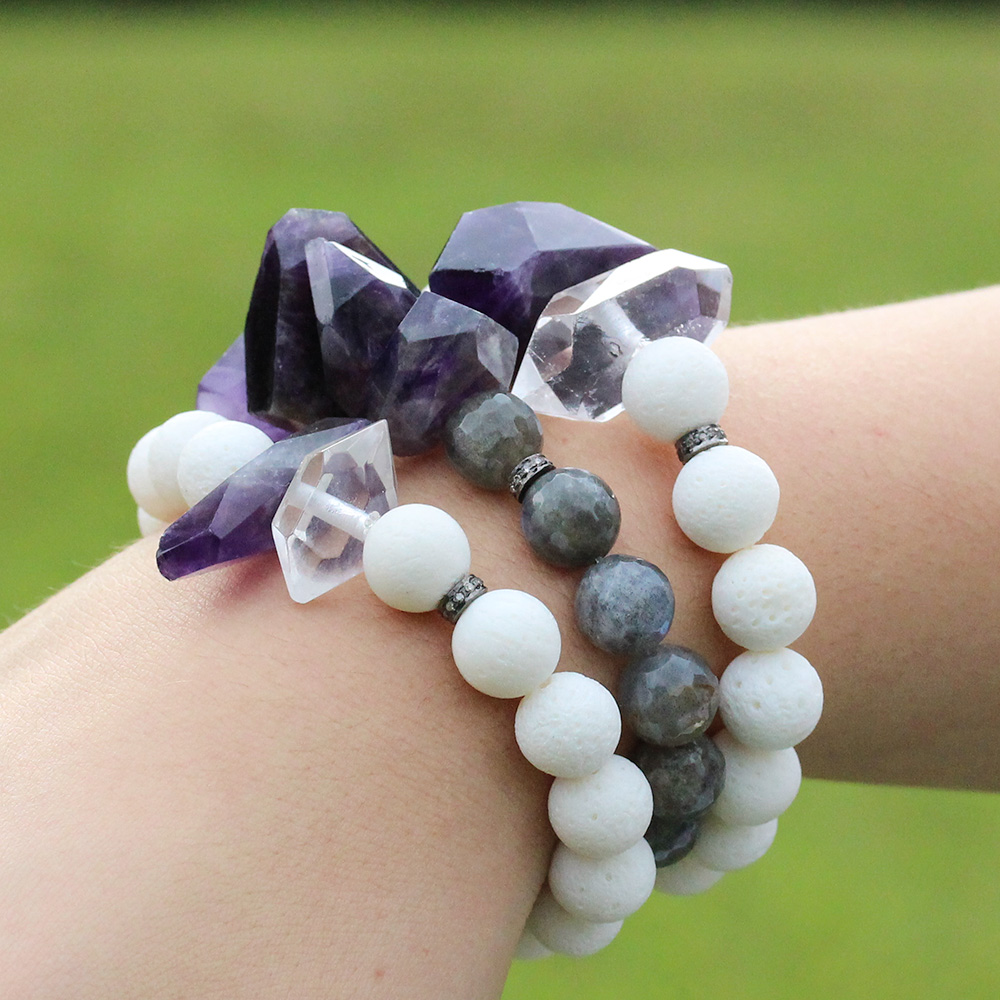 Amethyst, Quartz Coral & Diamond Statement Bracelet