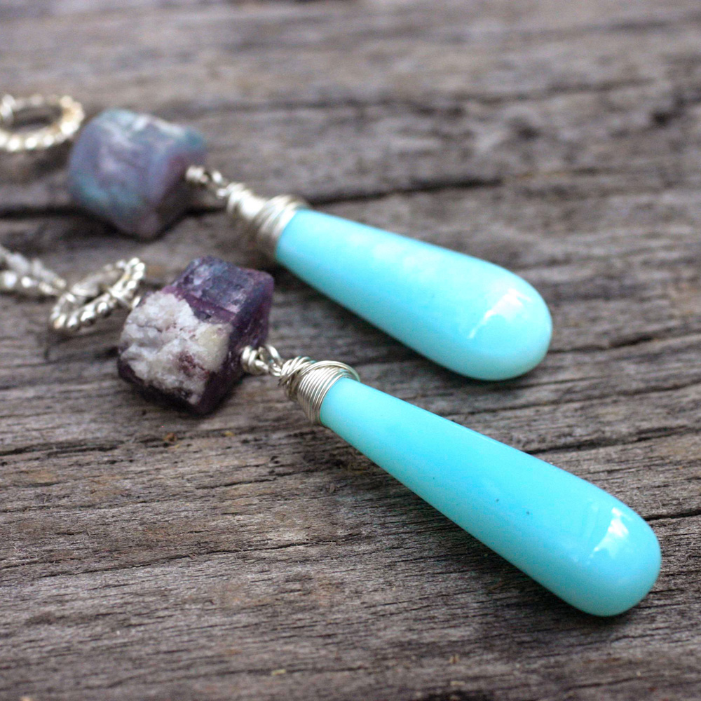 Tourmaline Diamond & Opal Long Pendant Necklace