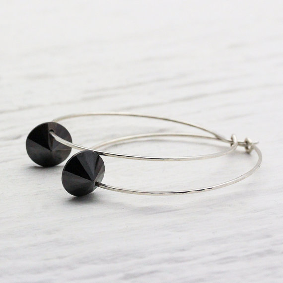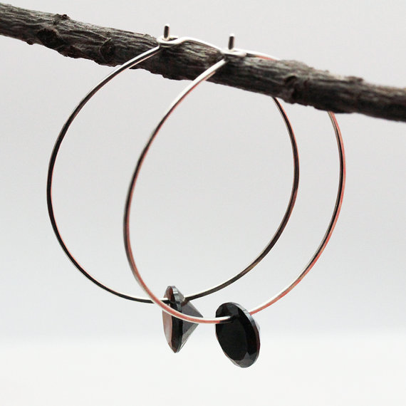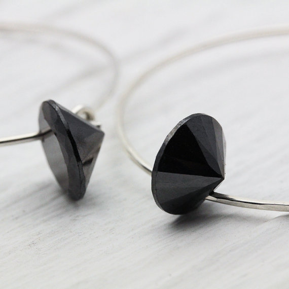 These ultra lightweight earrings are simple and modern and will go with virtually everything. The metallic black diamond shaped CZ has a gorgeous sparkle hue. The hoops are formed out of Argentium silver entirely by hand and are hammered and finished for a smooth and comfortable fit. You will forget you have them on.