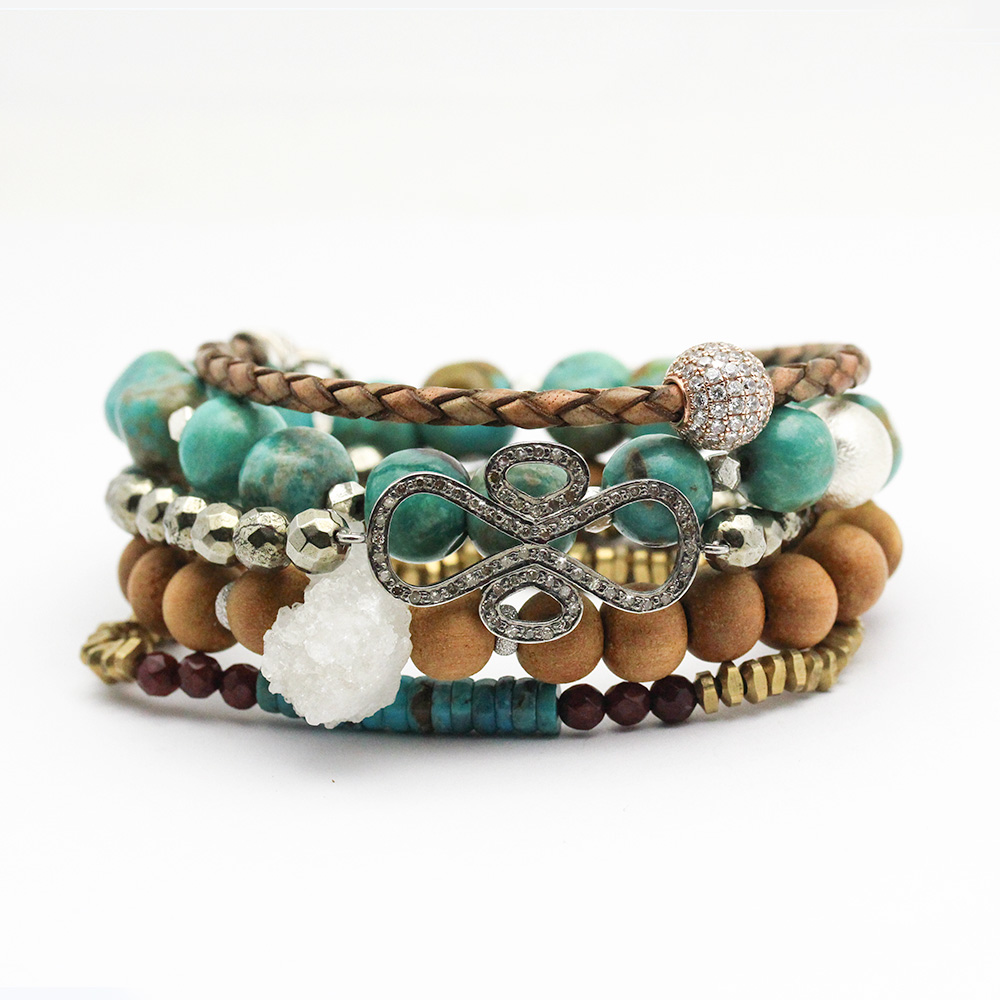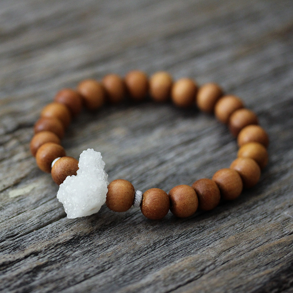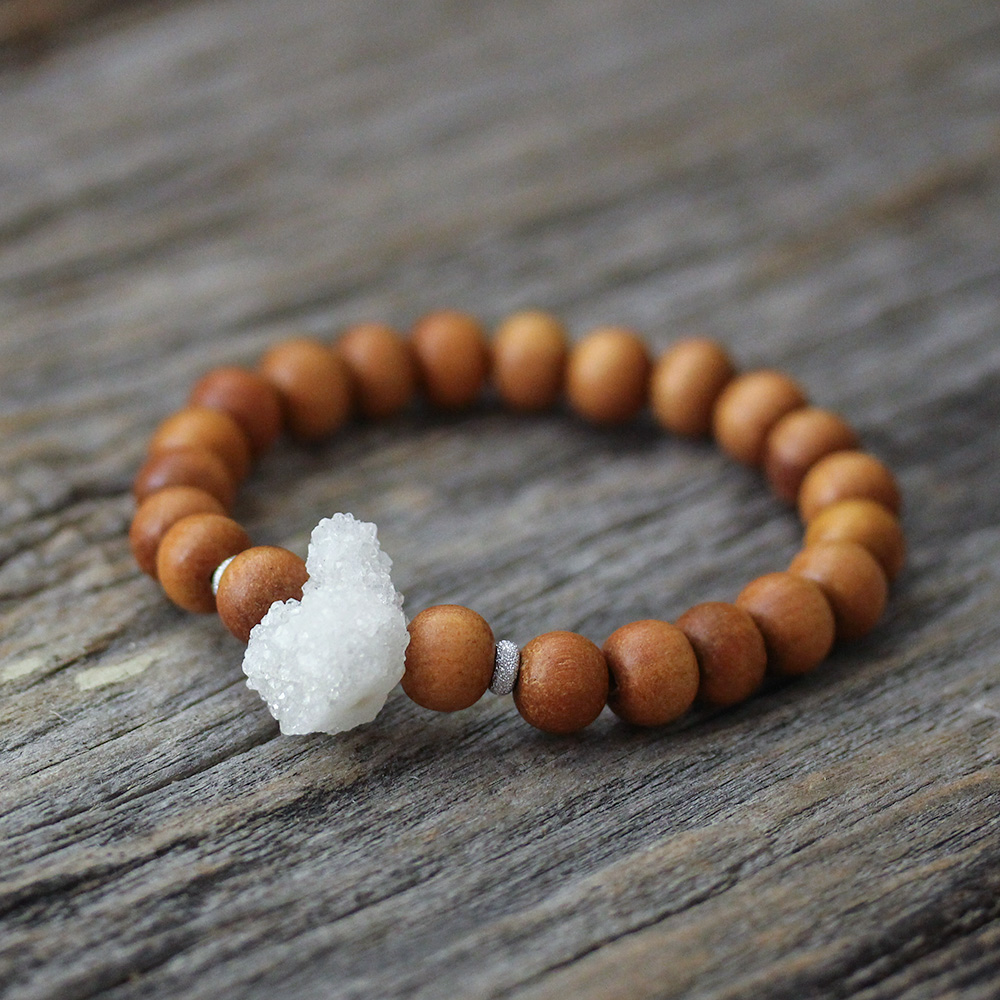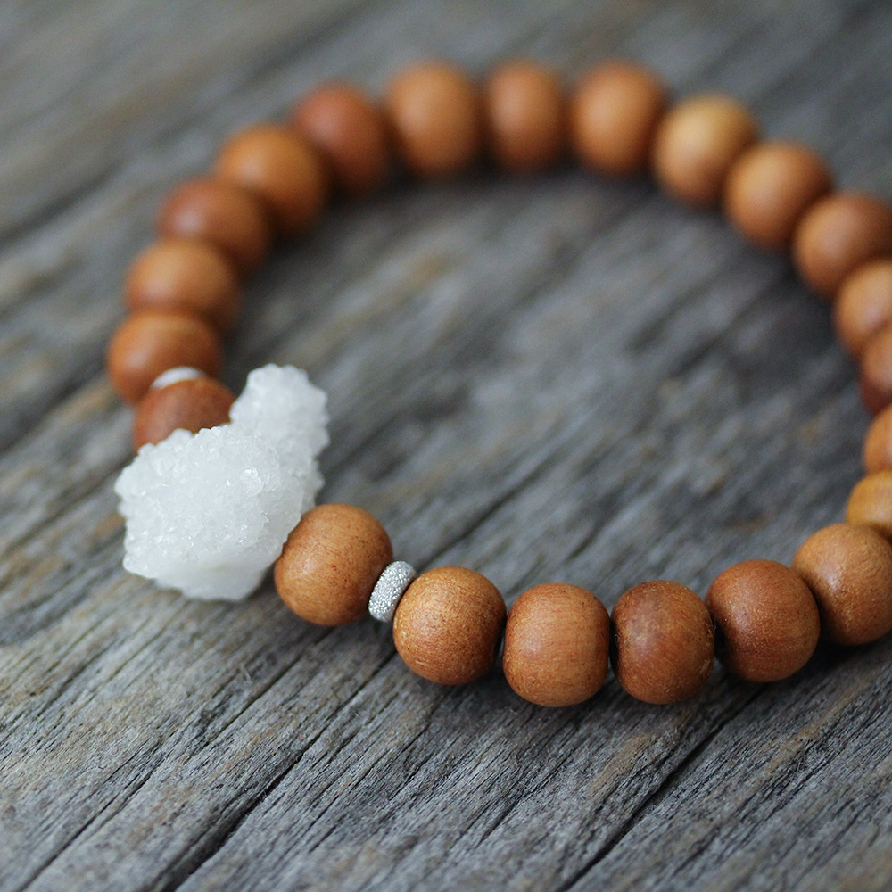 The druzy on this beautiful bracelet is simply gorgeous. Each druzy has its own free-form organic shape and is complimented with solid 14K white gold stardust focals and fragrant sandalwood. It is incredibly lightweight and comfortable making it a perfect piece for stacking.