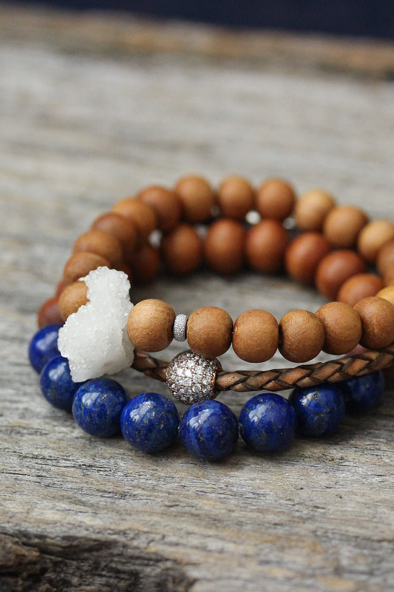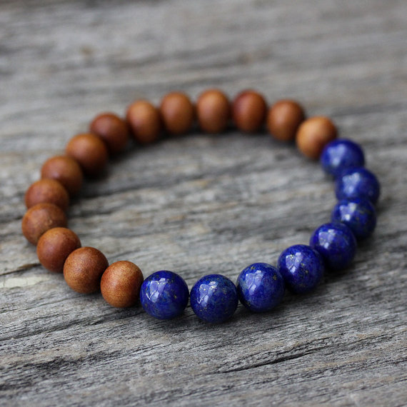 Gorgeous premium quality lapis lazuli is paired effortlessly with sandalwood in this divine unisex bracelet. This is a gorgeous 100% natural quality lapis. The fragrance is very subtle, slightly sweet and musky. It isn’t strong enough for others to smell on you, but when you inhale it will take you to a distant, exotic place in your mind. So amazing.
