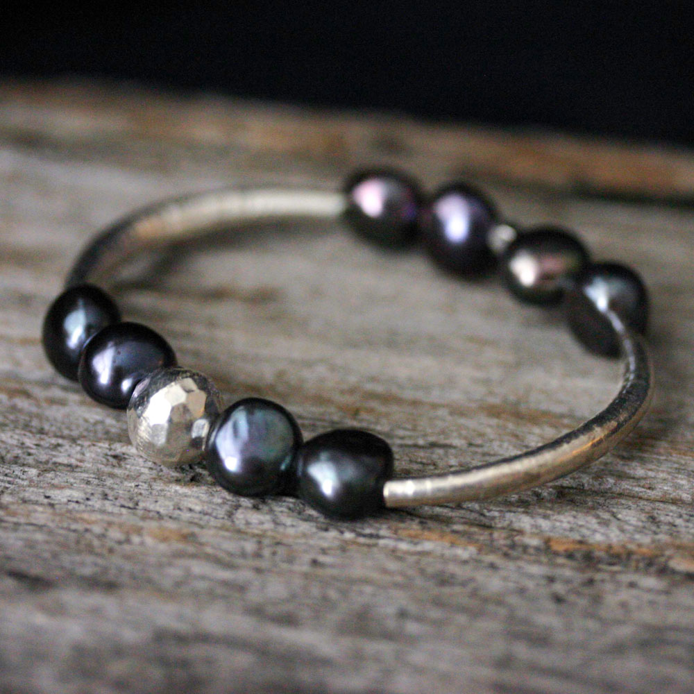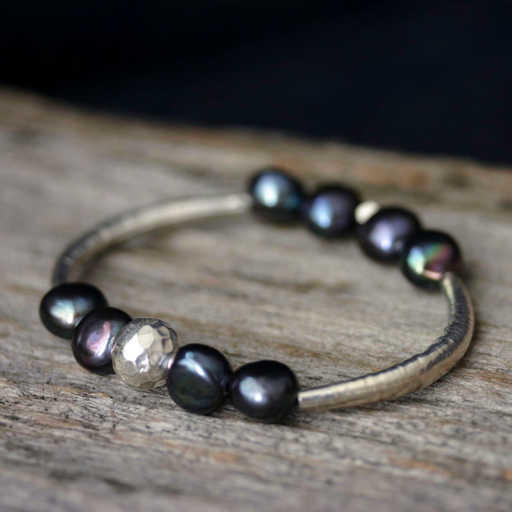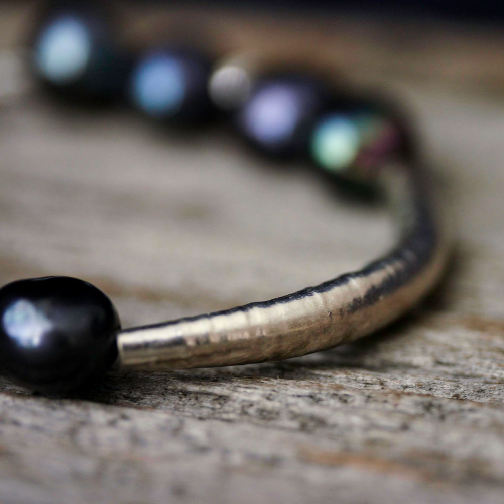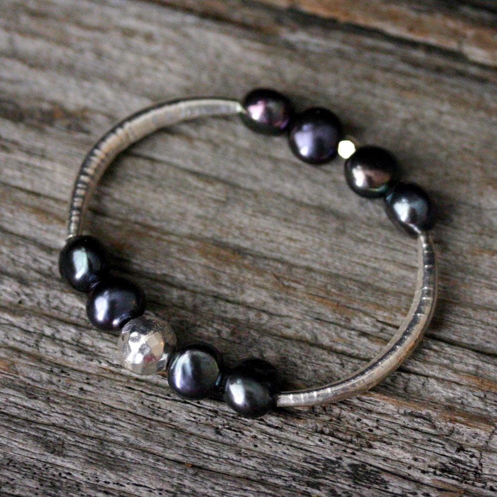 This bracelet is full of love. The fresh water pearls are downright gorgeous and have a beautiful combination of colors. There is purple, green, grey, aqua blue and a little bit of wine red that comes through. They are complimented with luxurious hammered Karen Hill Tribe silver. This silver has a higher content of of silver than its sterling counterpart. It is handmade by the Karen tribe in Thailand and has a distinct “seam” that verifies its authenticity. It is truly gorgeous craftsmanship that is done entirely by hand without the use of machines.