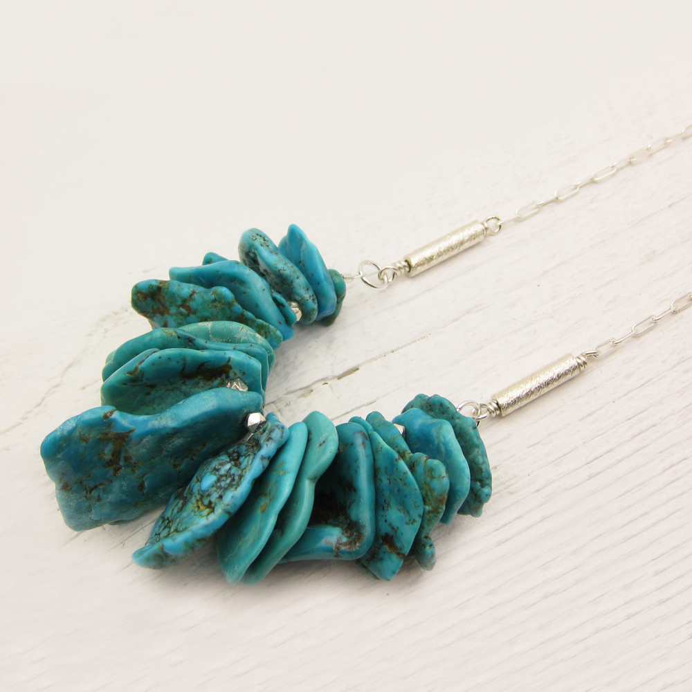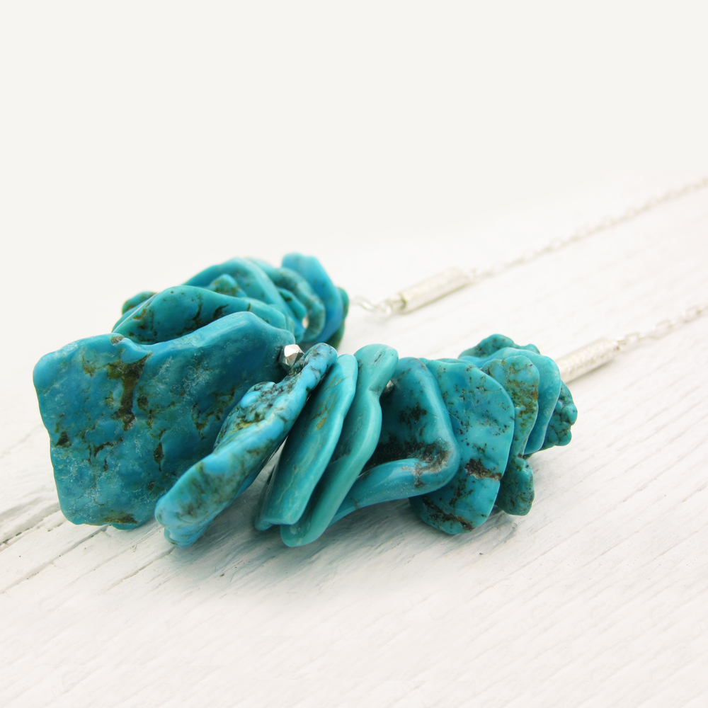 Among the finest of all turquoise, these Nacozari stones are 100% natural, untreated and non-stabilized turquoise from Sonora, Mexico. Their organic shape is quite honestly mesmerizing.