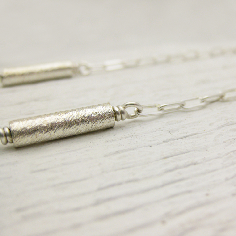 They are strung on gorgeous sterling silver chain with brushed sterling silver tubes and faceted sterling silver nuggets. This is a fun and fresh 28″ long and is clasp-free. It can be adjusted upon request (A sterling silver lobster clasp will be included if the length is shortened).