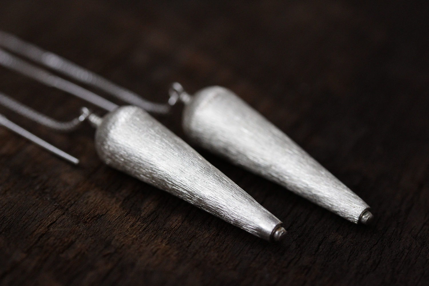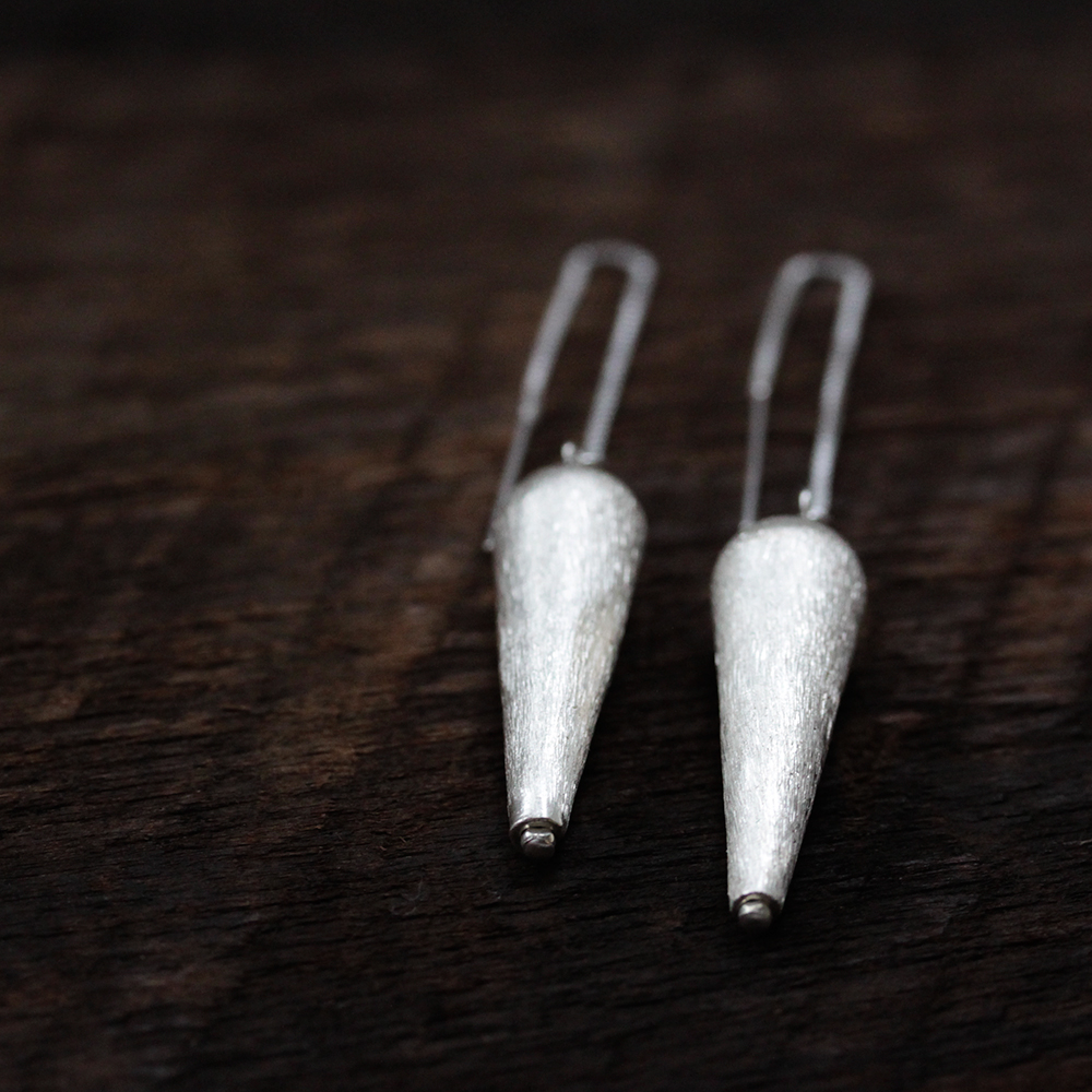 •Brushed Silver Tear Drop ~ 1 1/4″ long