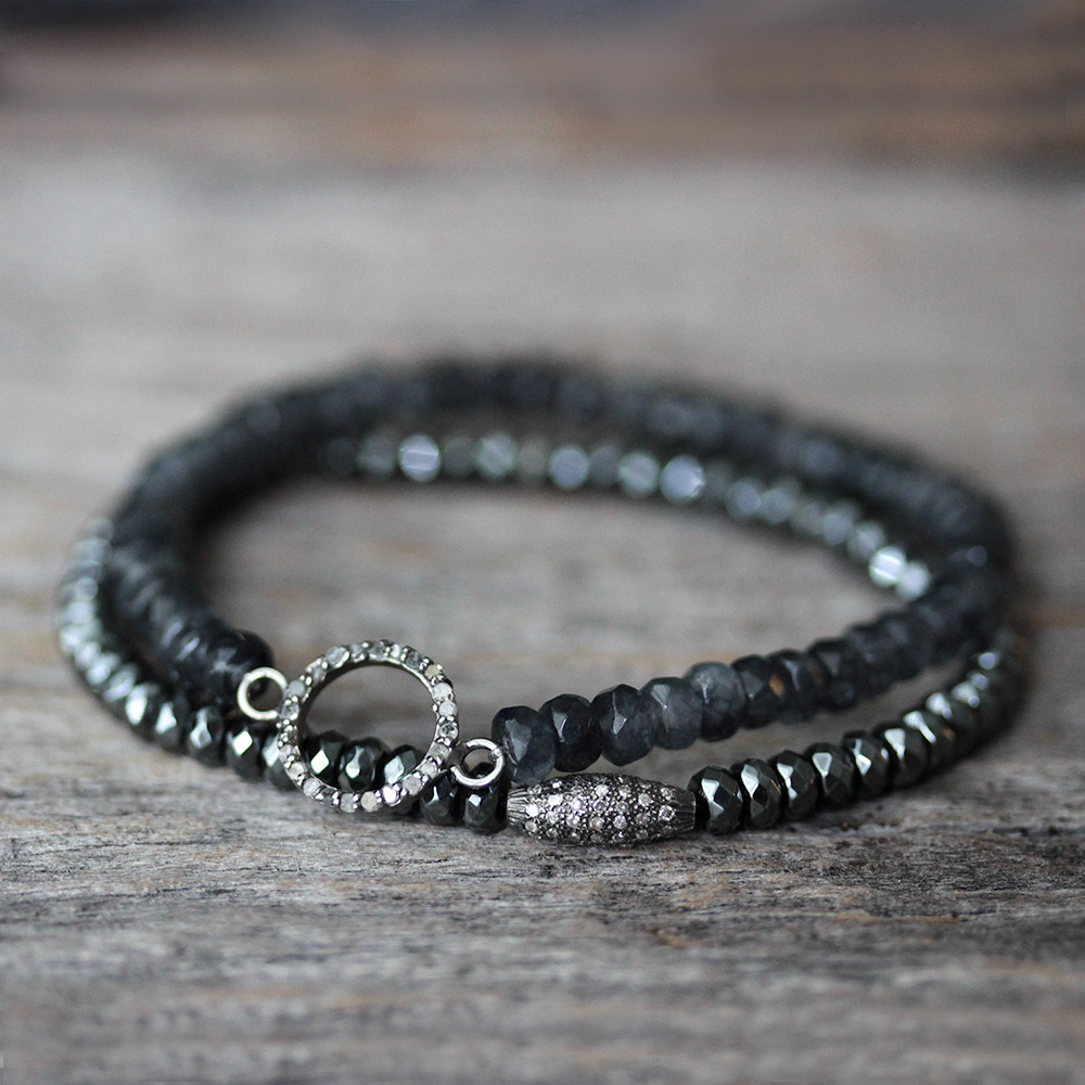 Diamond Circle Jade Stacking Bracelet in Sterling Silver