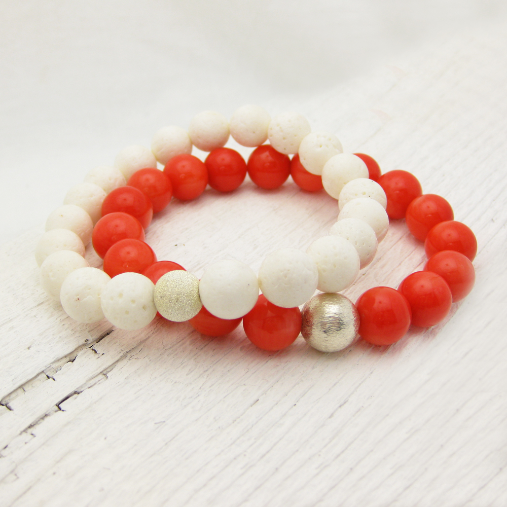 Beautiful White Coral is combined with a Solid Sterling Silver Stardust Ball in this versatile, perfect for spring and summer, stacking bracelet. It is gorgeous worn alone or stacked with other bracelets from the collection.